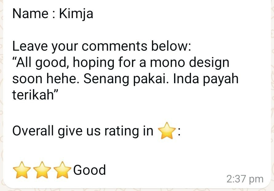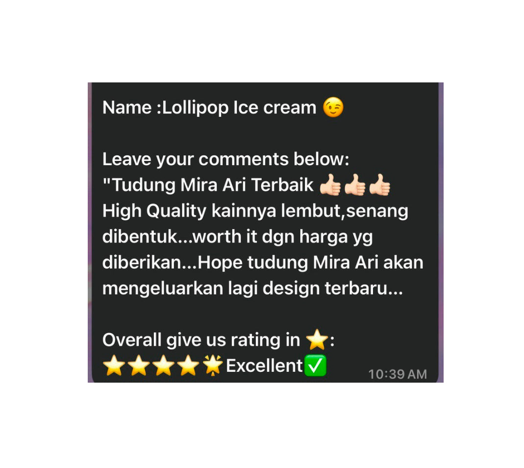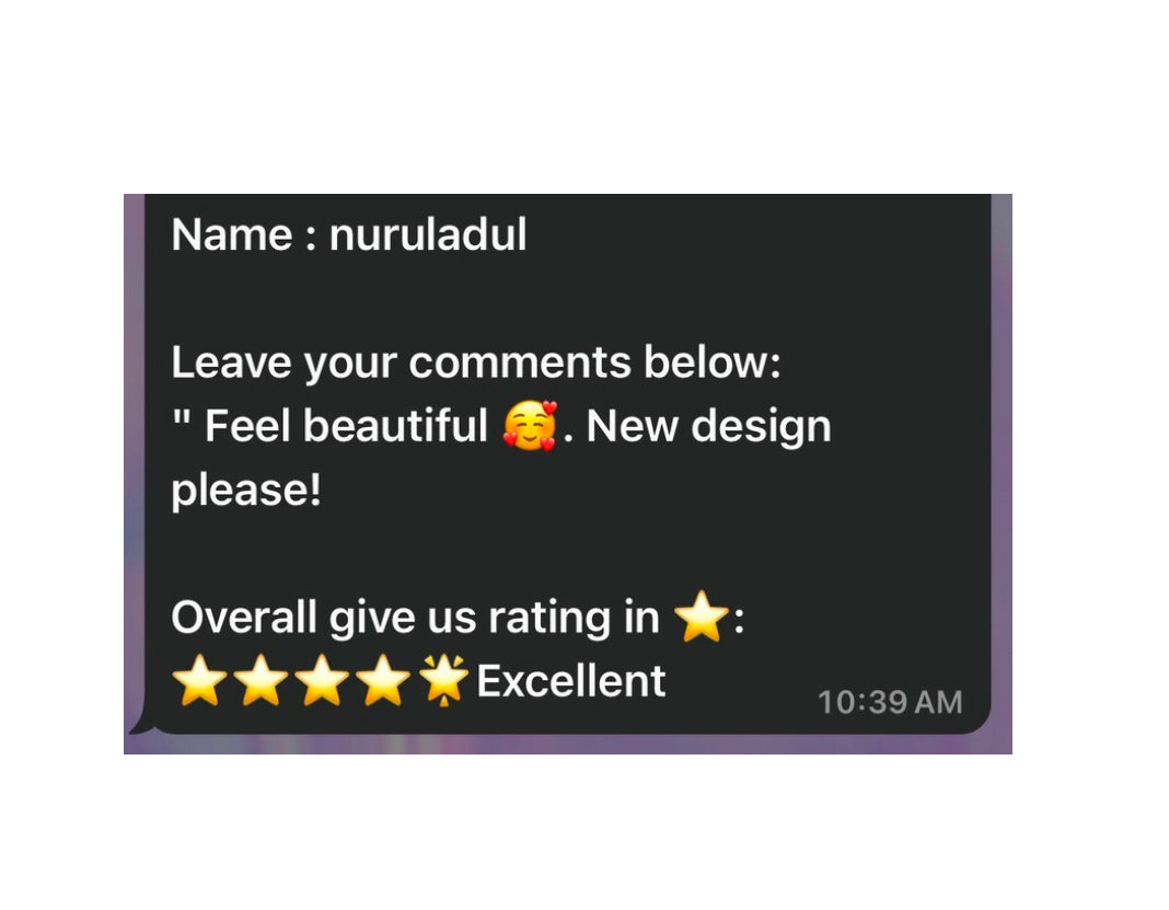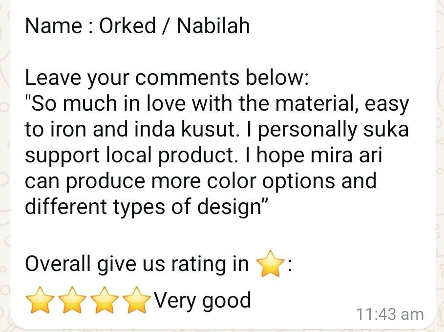 All feedback and reviews are taken from Whatsapp text and honest suggestions given from Mira Ari customers🎀