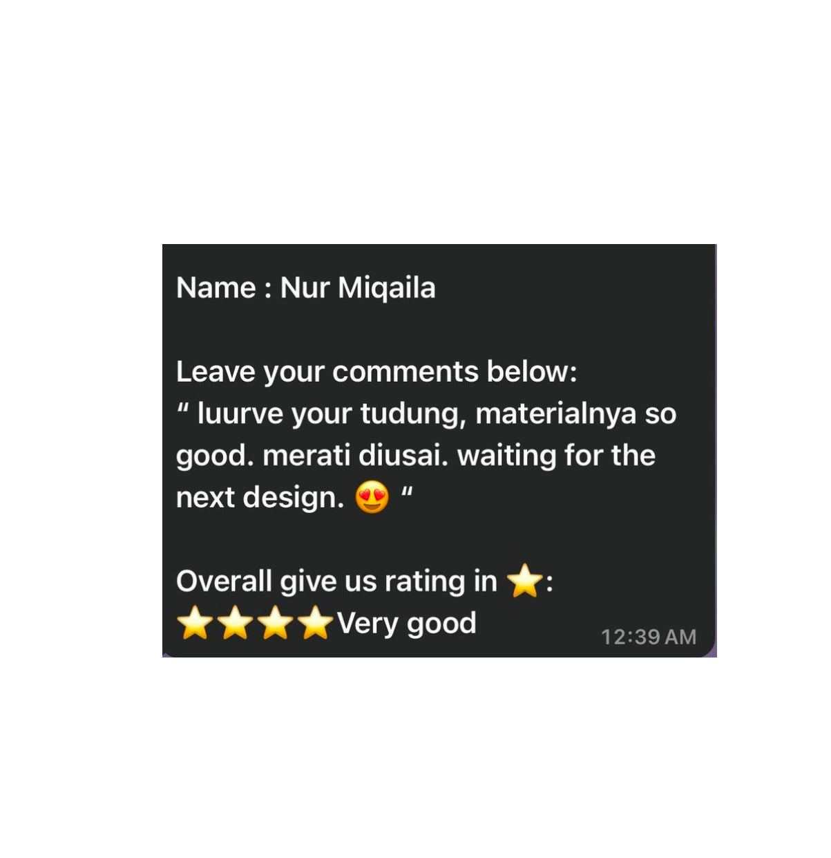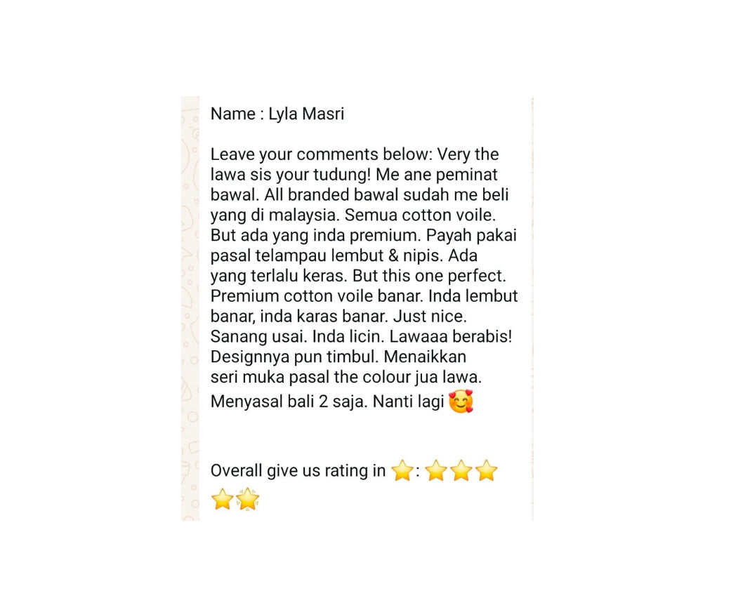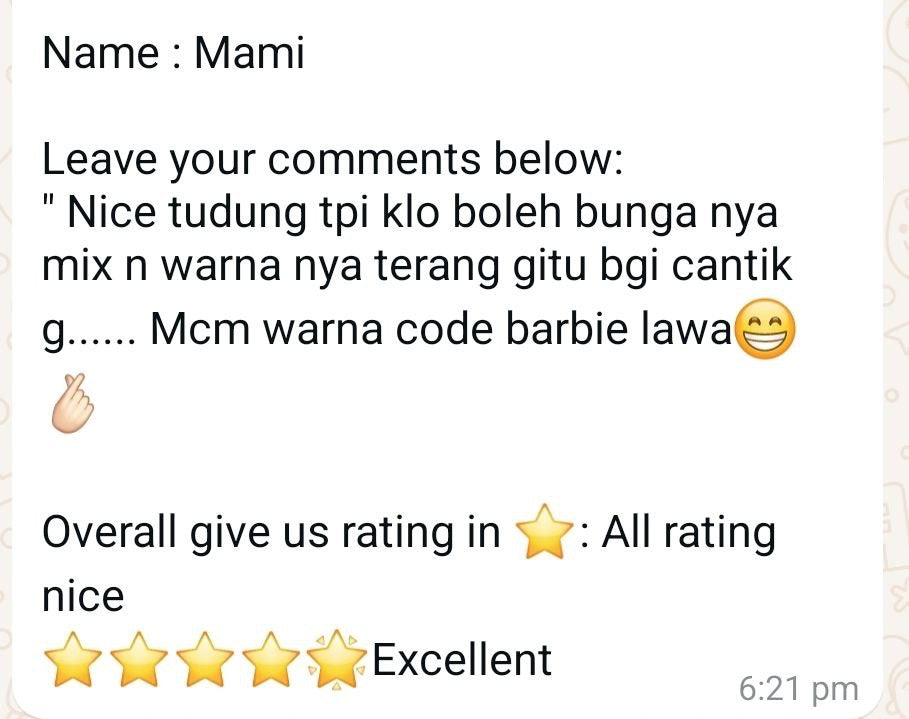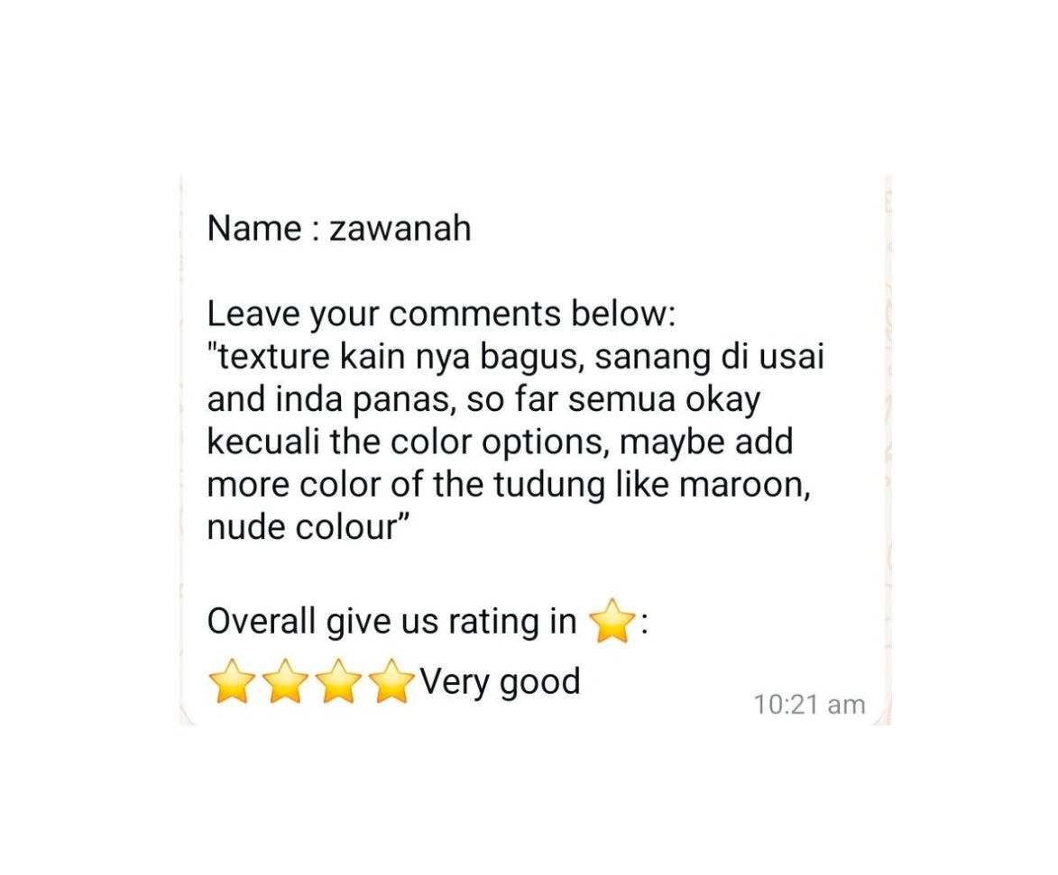 All feedback and reviews are taken from Whatsapp text and honest suggestions given from Mira Ari customers🎀